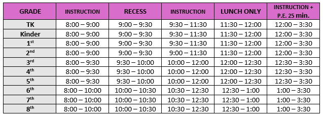 The following is the early release elementary school schedule during the fall and spring parent/teacher conference weeks, Monday through Thursday.